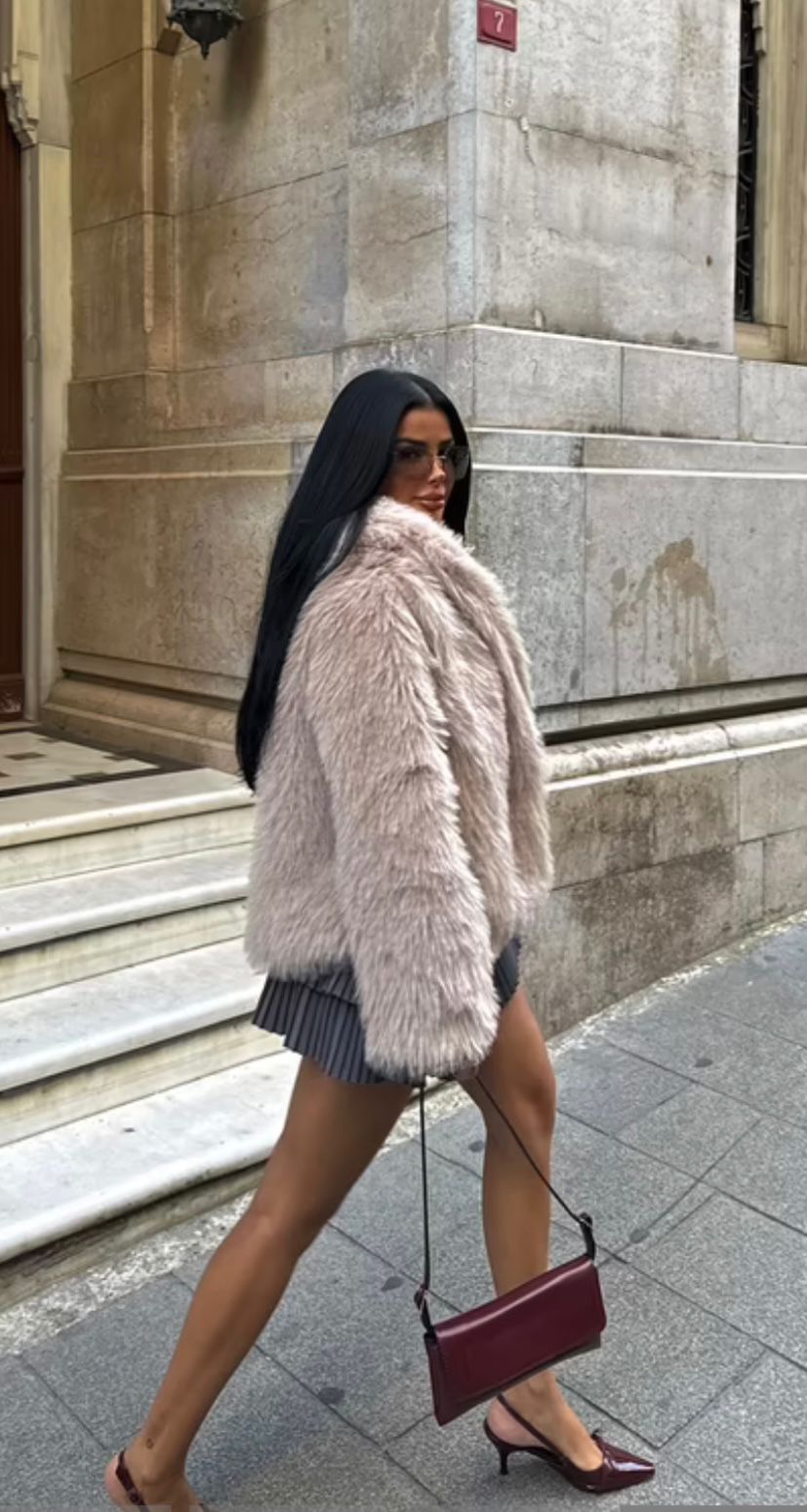 Mit ihrem voluminösen Fell-Look, der eleganten Struktur und der weichen Haptik ist sie das perfekte Statement-Piece für die kalte Jahreszeit.