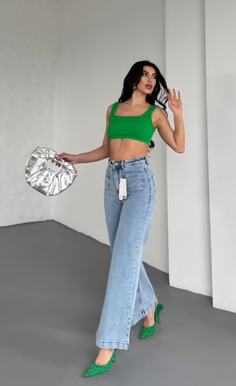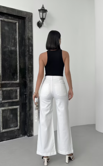 Der hohe Bund und das weit geschnittene Bein schaffen eine moderne, elegante Form, die sich sowohl mit Croptops als auch mit Blazern mühelos kombinieren lässt.