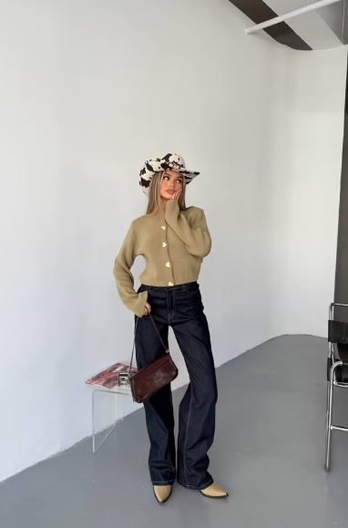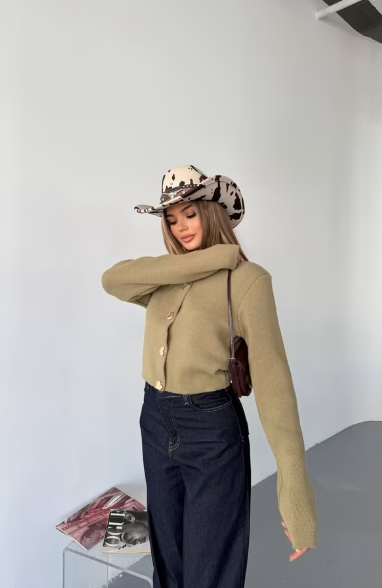 Das minimalistische Design mit feinen Knöpfen verleiht der Strickjacke einen modernen Look – perfekt kombinierbar zu Jeans, Röcken oder eleganten Hosen.