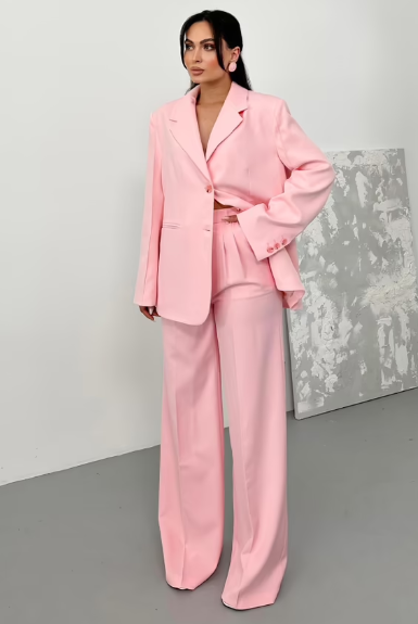 Der elegante High-Waist-Schnitt betont die Taille, während das weite Bein dem Look eine selbstbewusste, feminine Note verleiht – ideal für Office, Events oder gehobene Alltagsmomente.