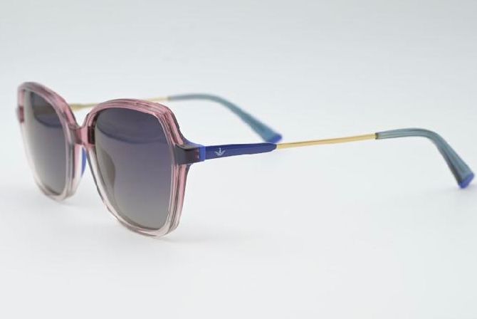 Diese Variante besticht durch ihren subtilen Farbverlauf von zartem Violett zu transparentem Beige. Die filigranen, goldfarbenen Metallbügel setzen luxuriöse Akzente und unterstreichen die Leichtigkeit des Designs.