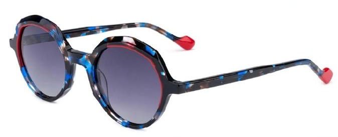Die Orbit ist ein modisches Statement für alle, die keine Angst vor Farbe oder Form haben. Mit ihrem runden, leicht kantigen Rahmen in einem aufregenden mehrfarbigen Tortoise-Muster (Blau, Schwarz, Braun) und den markanten roten Akzenten an Nasensteg und Bügelenden ist sie ein echter Eyecatcher. Die Gläser in sanftem Grau-Verlauf sorgen für einen coolen Kontrast und schützen deine Augen zuverlässig vor der Sonne. Urban, künstlerisch, rebellisch – die Orbit ist wie geschaffen für kreative Köpfe und Individualisten.